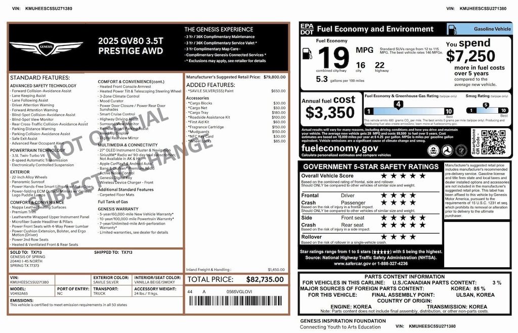 GV80 2.5T 2wd with Prestige and Advanced package