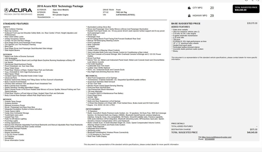 2016 Acura RDX Base w/Technology Package w/only 84,603 miles. 3.5L V6 (279 hp) with a 6-speed automatic transmission. Slate Silver Metallic with Ebony Leather interior. Loaded with Technology pkg, Voice Recognition Navigation, ELS Studio Premium Audio, Blind Spot Information, Duel- Climate Control, Heated Front Seats, Sunroof and 18" Wheels. Way too many options to list see third picture for original window sticker. Clean Carfax! Located at 20440 Interstate I-45 North, Spring, Tx minutes from The Woodlands, Tomball and Conroe. CALL US (346-589-8830) CLICK US (GenesisofSpring.com) or COME SEE US!!