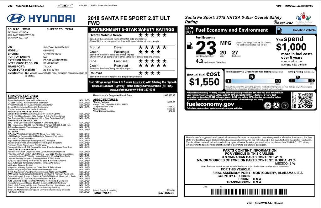 Used 2018 HyundaiSanta Fe Sport 2.0T Ultimate